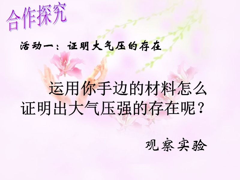 - 下一份课件:人教版:《9.3大气压强》PPT课件