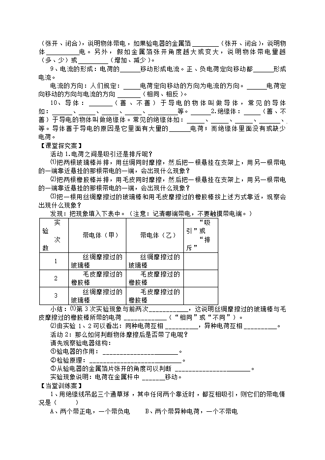 2、了解验电器的原理及其作用,了解电荷量及其单位。