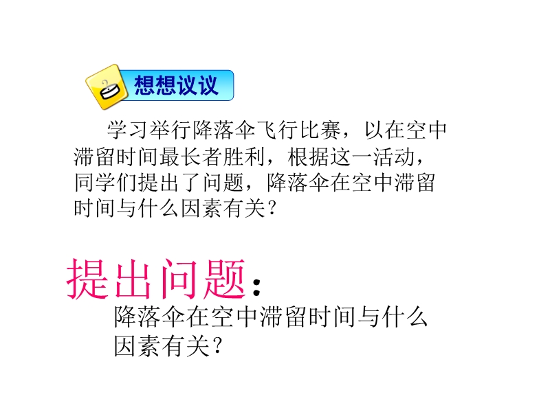 【学海风暴】2016教科版八年级物理上册课件:1.3活动:降落伞比赛