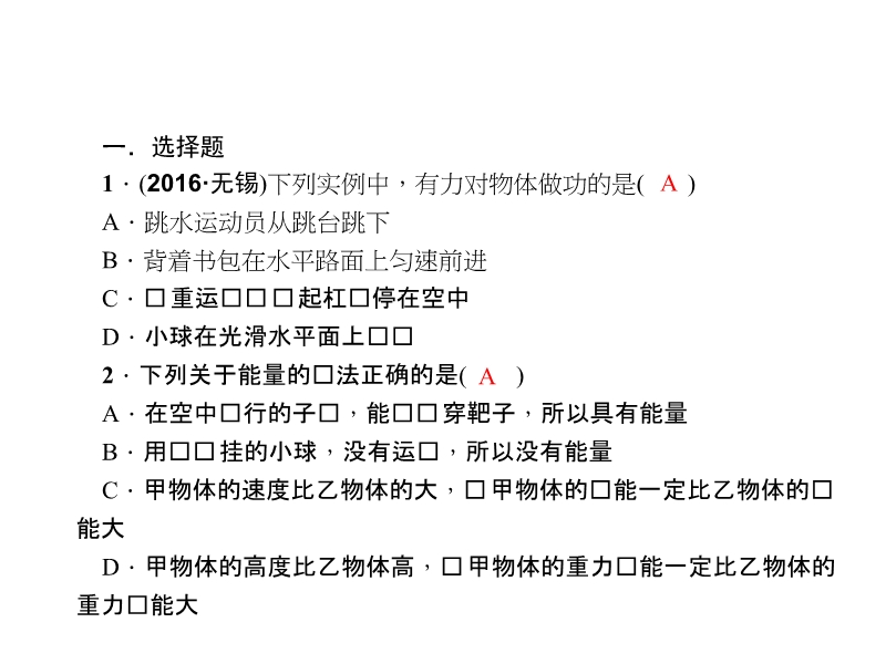 【原创新课堂】2017春人教版八年级物理下册课件:《第十一章 功和机械能》章末复习备考训练