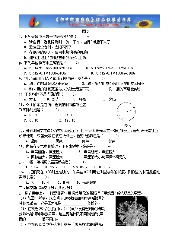 2.下列四组数据是郑老师从全班同学的作业答案中挑选出来的,其中正确的是( )。