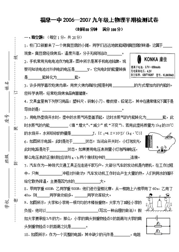 - 下一份试卷:东明县09-10学年度素质教育终结性检测初三物理上册试题及答案(教科版)