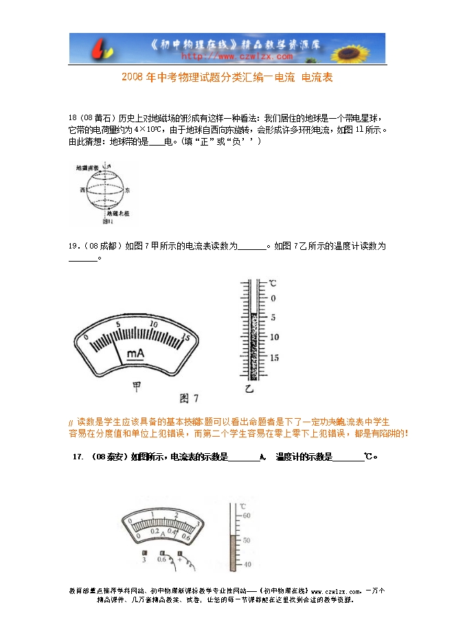 //读数是学生应该具备的基本技能。本题可以看出命题者是下了一定功夫的。电流表中学生容易在分度值和单位上犯错误,而第二个学生容易在零上零下上犯错误,都是有陷阱的!