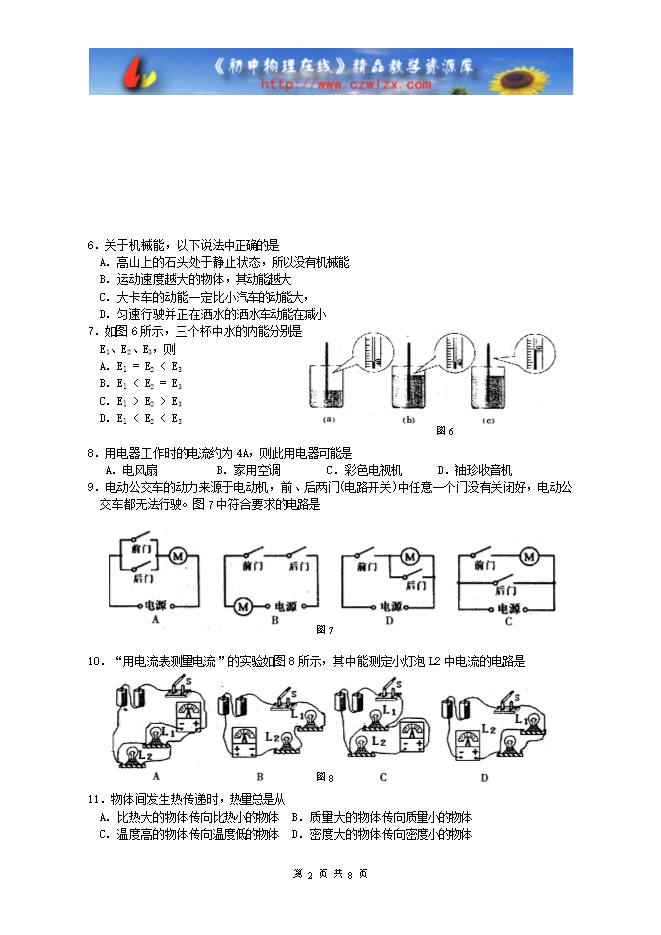 - 1385南京白下区2010-2011学年10月初三物理阶段性考试试卷及答案