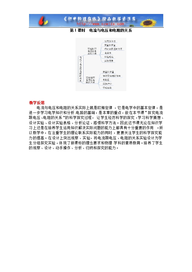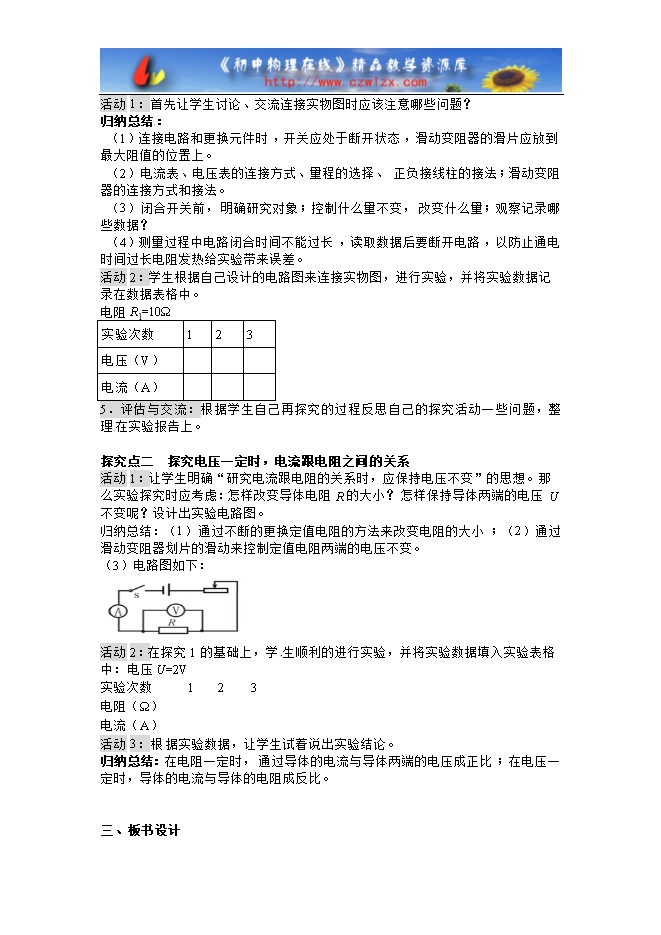 【学练优】人教版九年级物理教学设计:17.1电流与电压和电阻的关系
