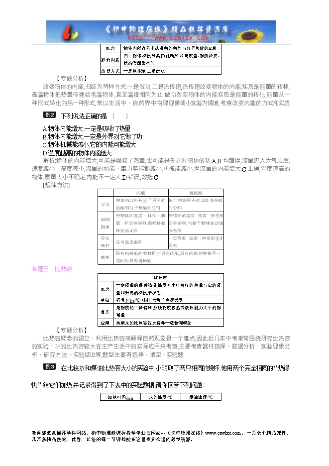 新教材《完全解读》九年级物理教学详案:第十三章 内能 复习课(人教版,word版,附本章质量评估题)