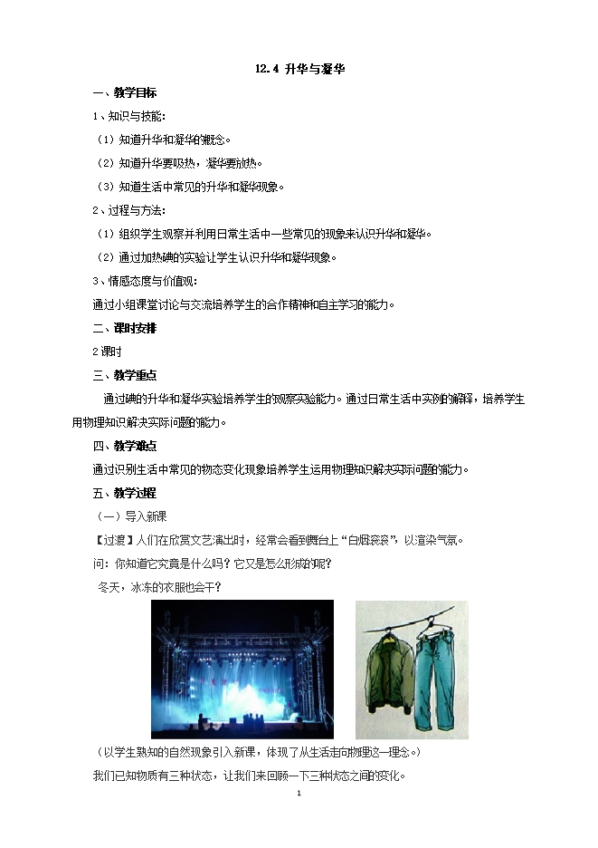 (2)通过加热碘的实验让学生认识升华和凝华现象。