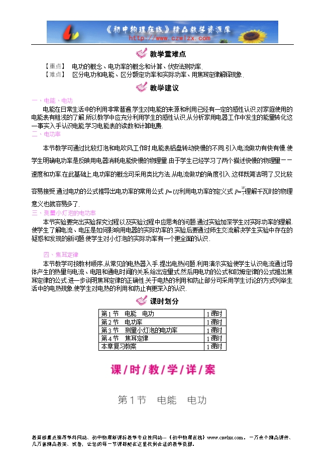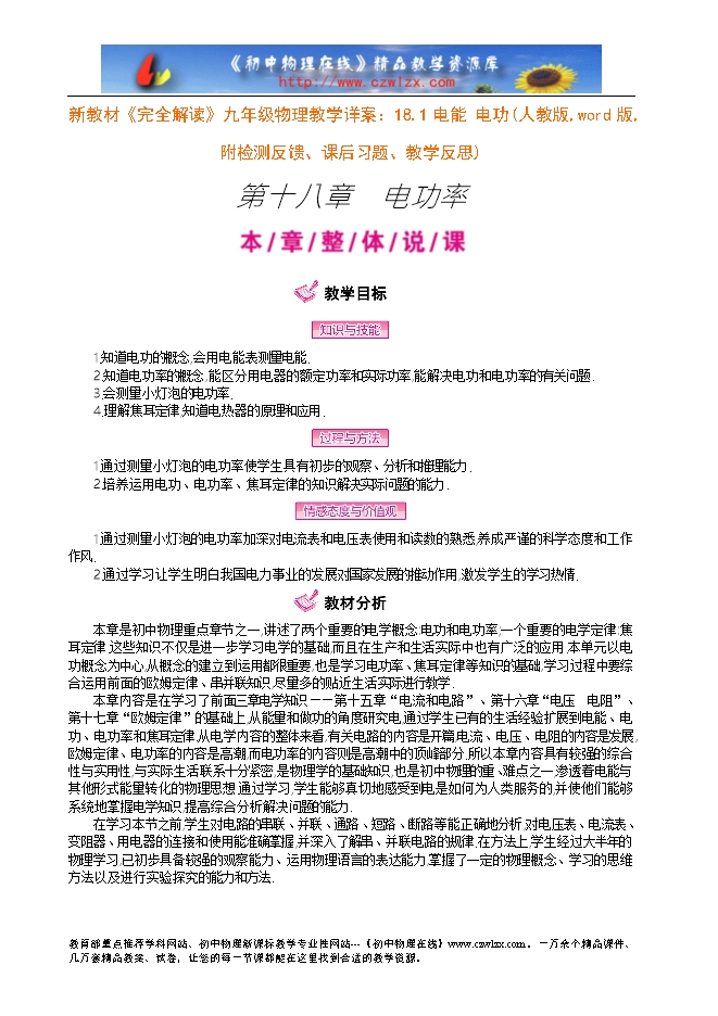 新教材《完全解读》九年级物理教学详案:18.1电能 电功(人教版,word版,附检测反馈、课后习题、教学反思)