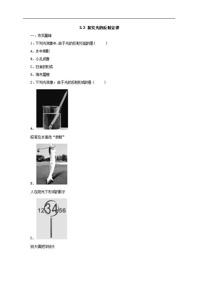 【一线教师倾情奉献】沪粤版物理八年级上册-3.2探究光的反射定律 同步练习