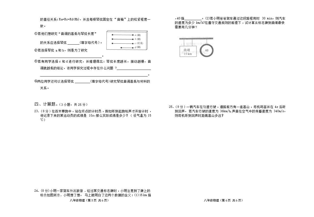 云南省宣威市田坝一中2016-2017学年上学期期中考试八年级物理试卷(无答案)