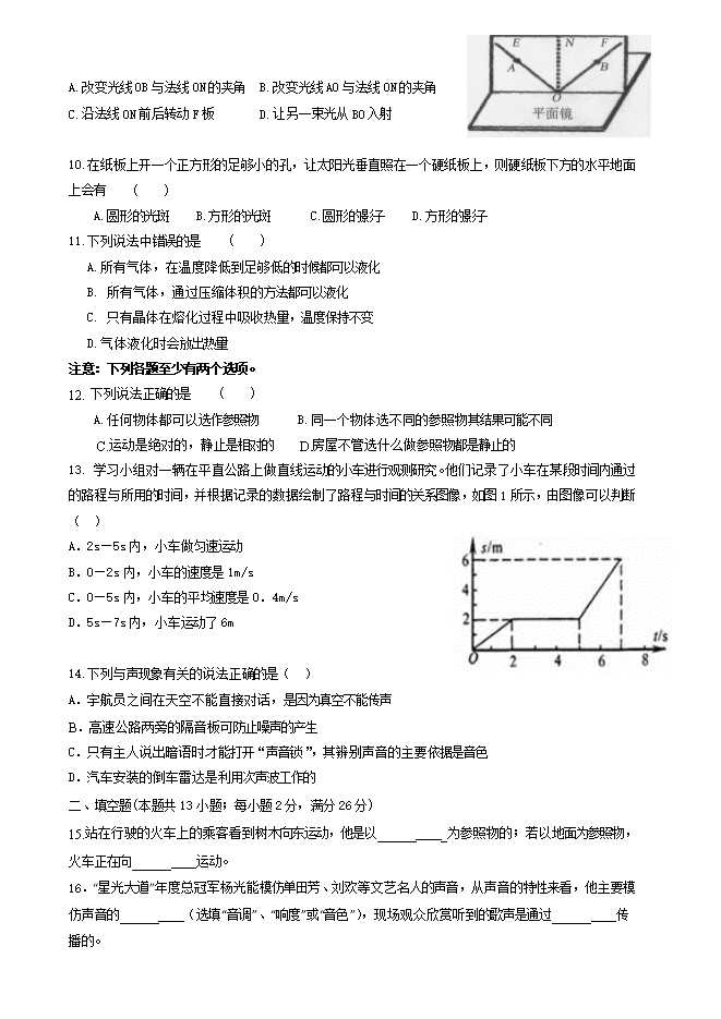 辽宁省大连市第三十五中2017-2018学年上学期期中考试八年级物理试卷及答案