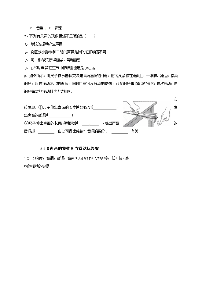 山东省郯城县红花镇初级中学八年级物理:3.2声音的特性 教案+学案+练习(3份打包)