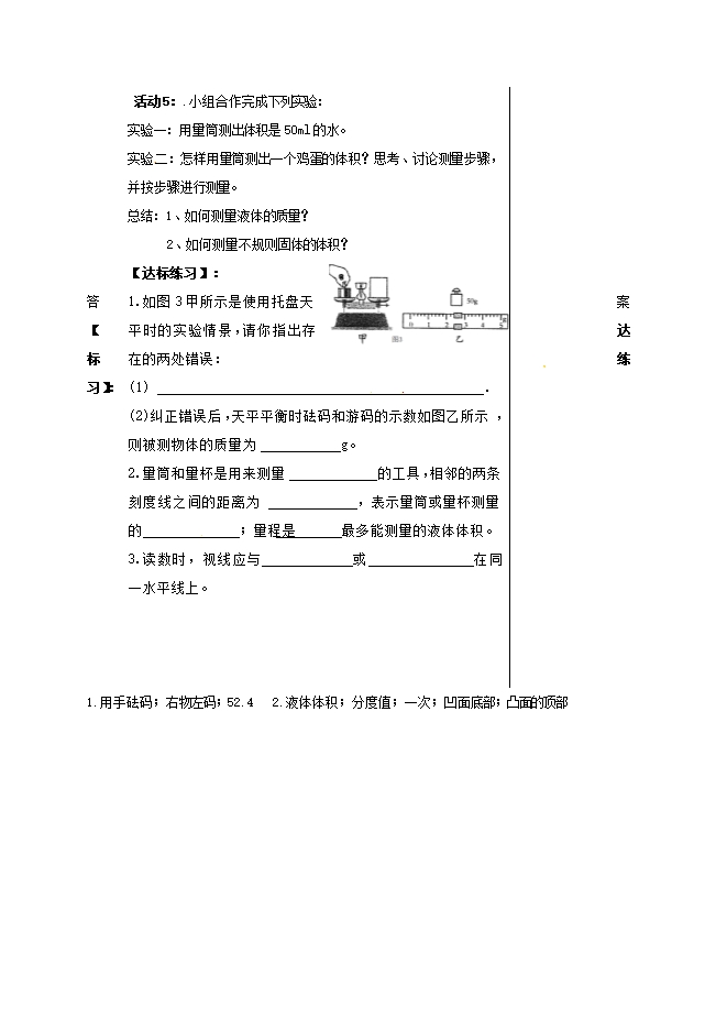 "s New Roman"-hansi-font-family:"s New Roman";学习使用天平和量筒教案<an>;/b>;b>;span lang=" en-us"="">