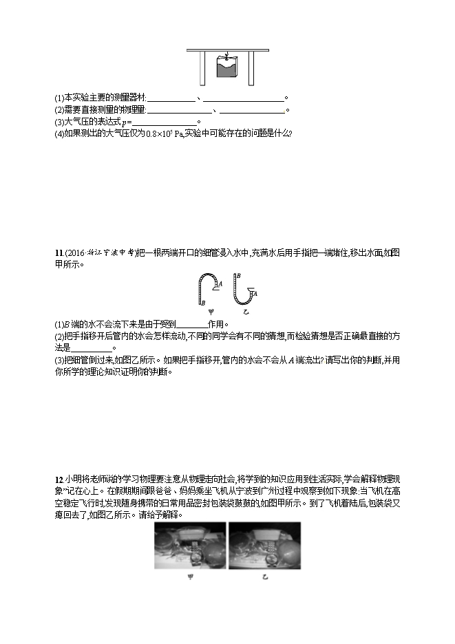 2018春人教版八年级物理下册同步精练:9.3大气压强(附解析)