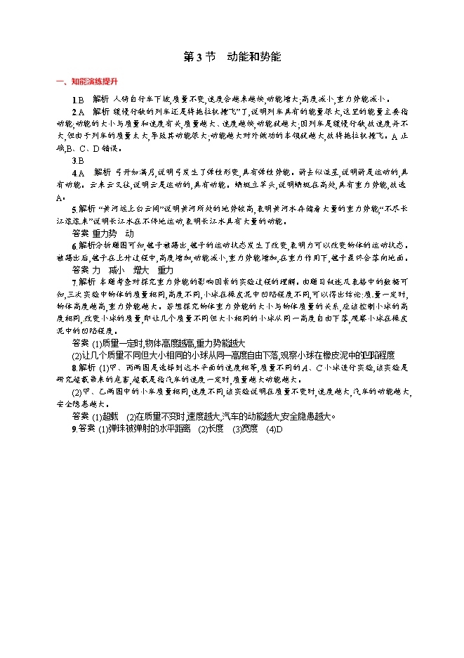 2018春人教版八年级物理下册同步精练:11.3动能和势能(附解析)