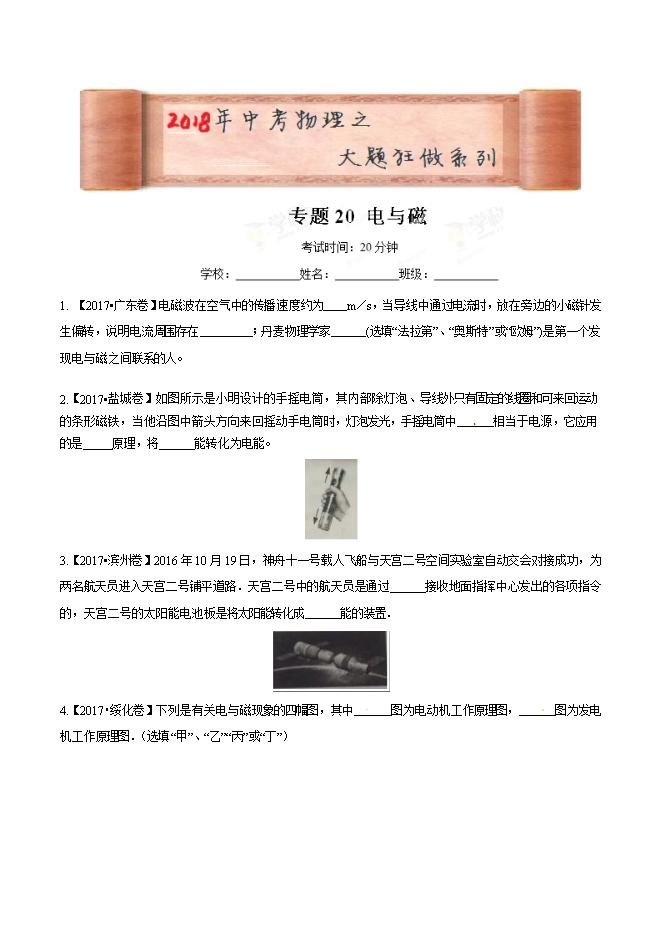 2018年中考物理大题狂做系列:专题20 电与磁(word原卷版和解析版)