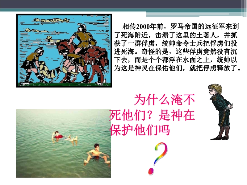 【内容简介】人教版八年级物理下册《10.1浮力》ppt课件共有43张幻灯片,从煮汤圆和死海不死引入课题,受力分析得出浮力概念和产生原因,设计探究实验得出影响浮力大小的因素,并配有大量练习。