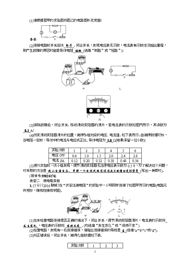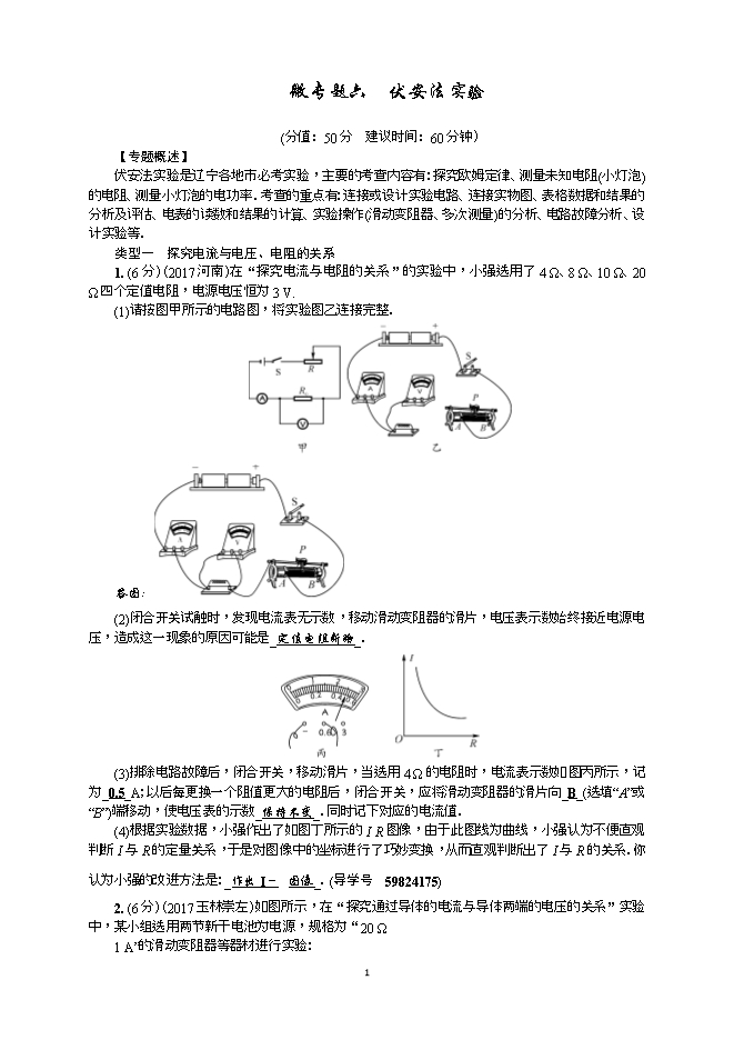 2018年(辽宁地区)聚焦中考物理总复习考点跟踪突破训练:微专题六 伏安法实验