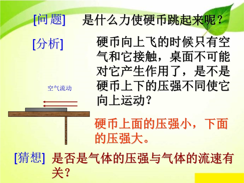 【内容简介】人教版:《9.4流体压强与流速的关系》PPT+视频课件,共有36张幻灯片。课件通过展示和引导学生做实验探究了气体压强与流速的关系,课件引导学生充分认识了升力的产生原因。