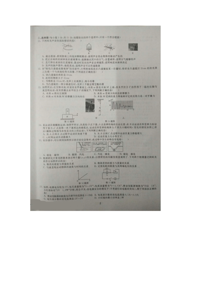 2018年安徽省中考物理模拟试题(扫描版 无答案)