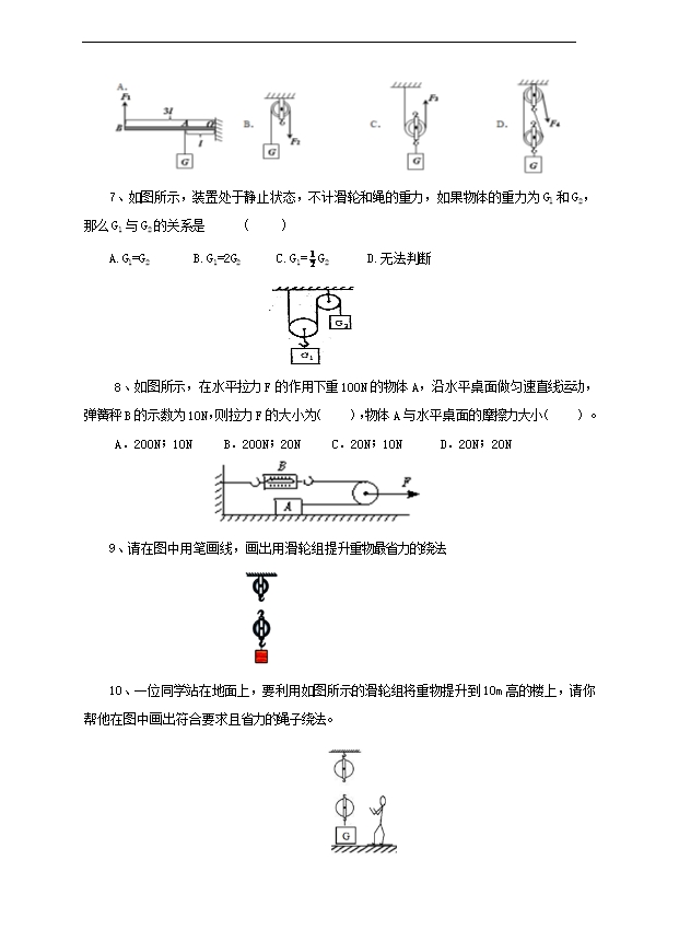 - 1732025-2026学年苏科版物理九年级上册同步练习:11.2 滑轮(附答案)
