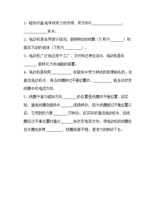 - 1582019-2020北师大版九年级全册物理教案:《14.6直流电动机》(详案附教材分析和教学反思)