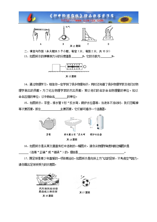 山西省晋中市榆社县2017-2018学年八年级下学期期中考试物理试题及答案