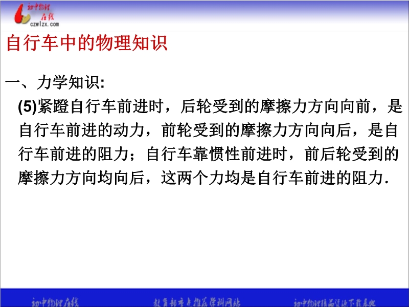 - 1424自行车中的物理知识(2008中考物理专题复习ppt课件)