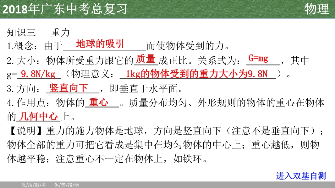 广东省佛山市2018中考物理复习课件:《第七章 力》PPT课件