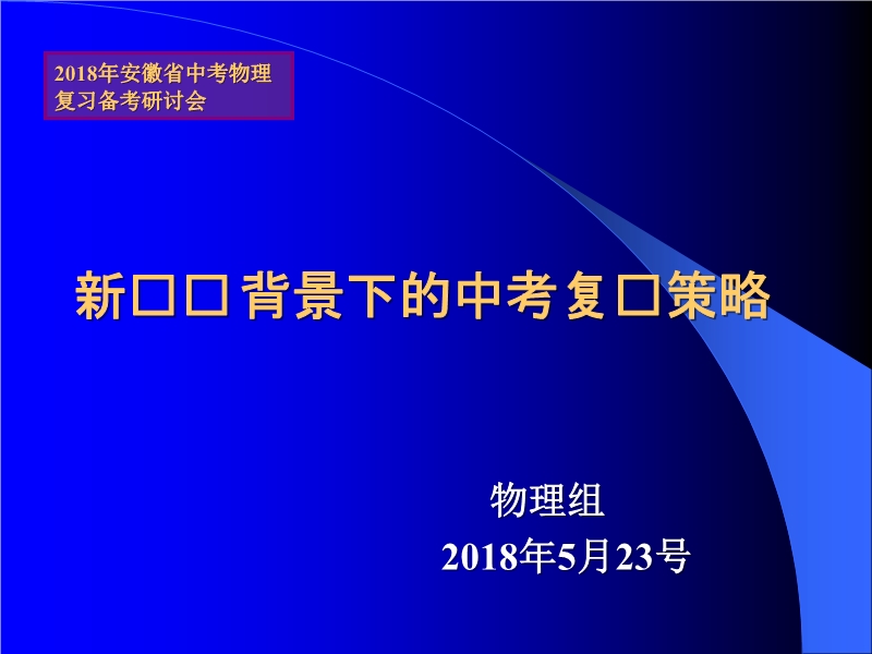 2018年安徽省中考物理复习备考研讨会:《新课标背景下的中考复习策略》PPT