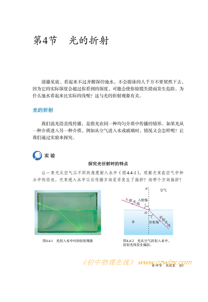 2012年新人教版物理八年级上册《4.4光的折射》电子课本