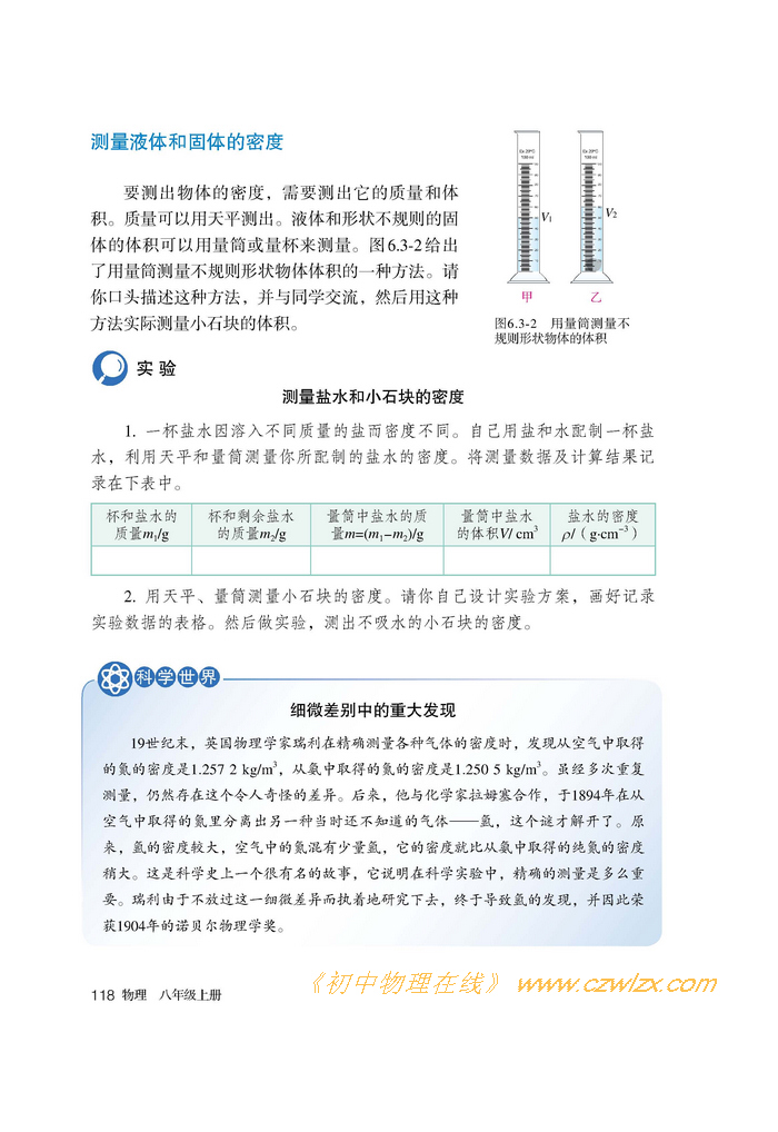 2012年新人教版物理八年级上册《6.3测量物质的密度》电子课本