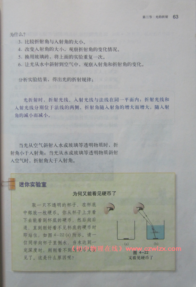2012新沪科版八年级《4.3光的折射》电子课本