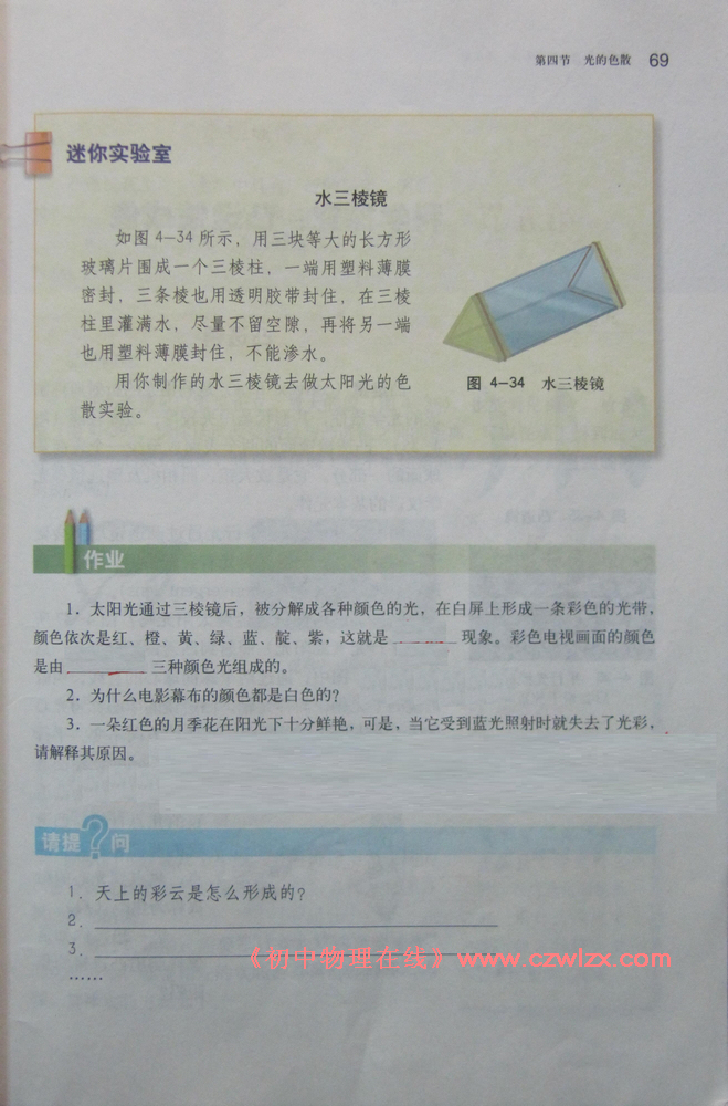 2012新沪科版八年级《4.4光的色散》电子课本