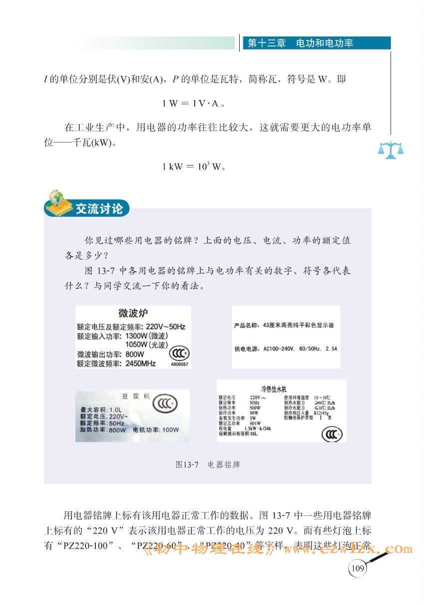 2013新北师大版九年级《13.2电功率》电子课本