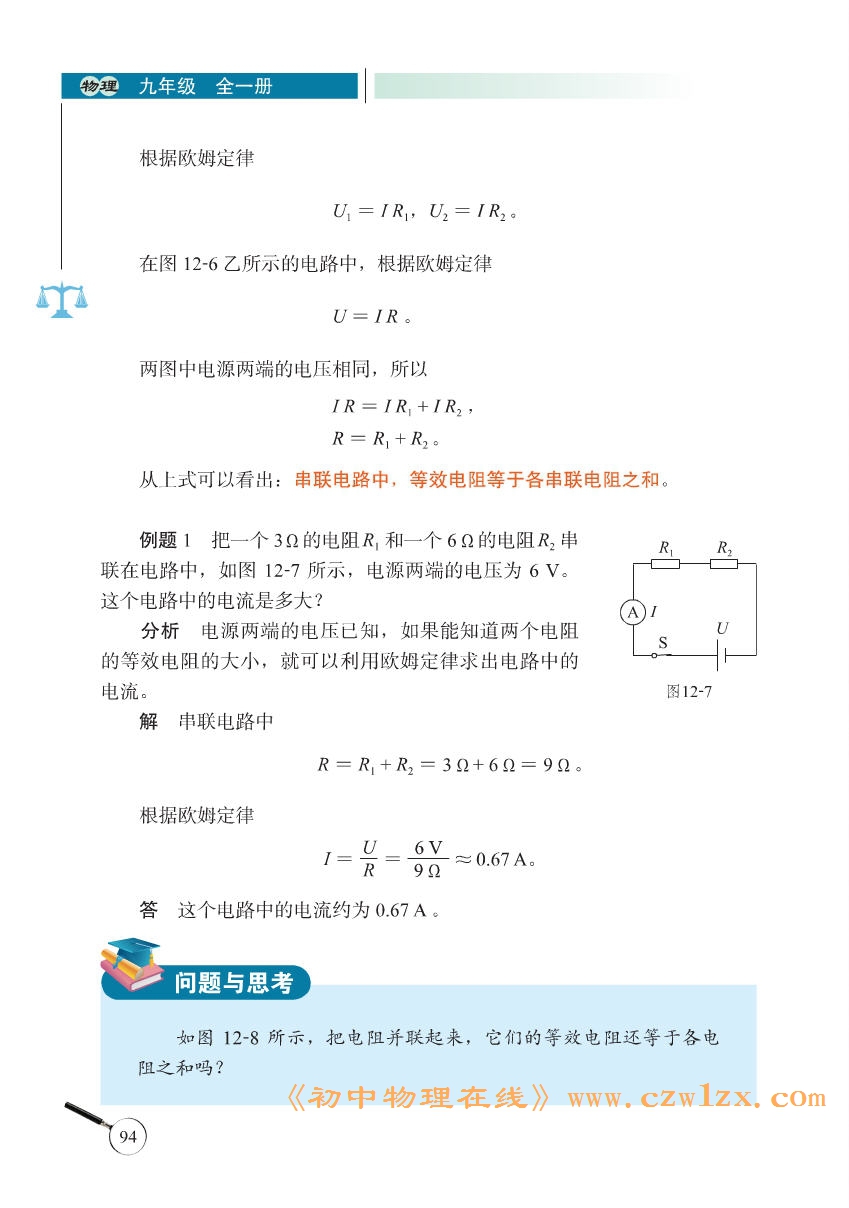 2013新北师大版九年级《12.3串、并联电路中的电阻关系》电子课本