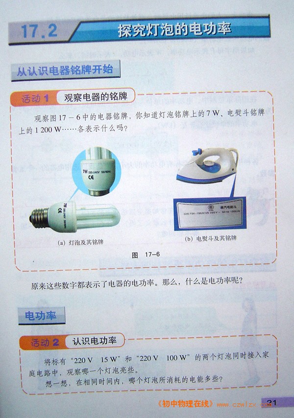 新沪粤版《17.2探究灯泡的电功率》电子课本