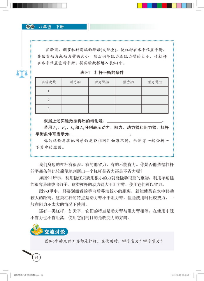 2012年新北师大版物理八年级下册《9.1杠杆》电子课本