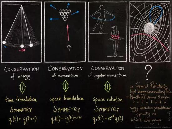 诺特定理(Noether‘s Theorem)联系了物理学中的两个重要概念:对称性(Symmetry)和守恒(Conservation)。(图片来源:Scott Greenberg)