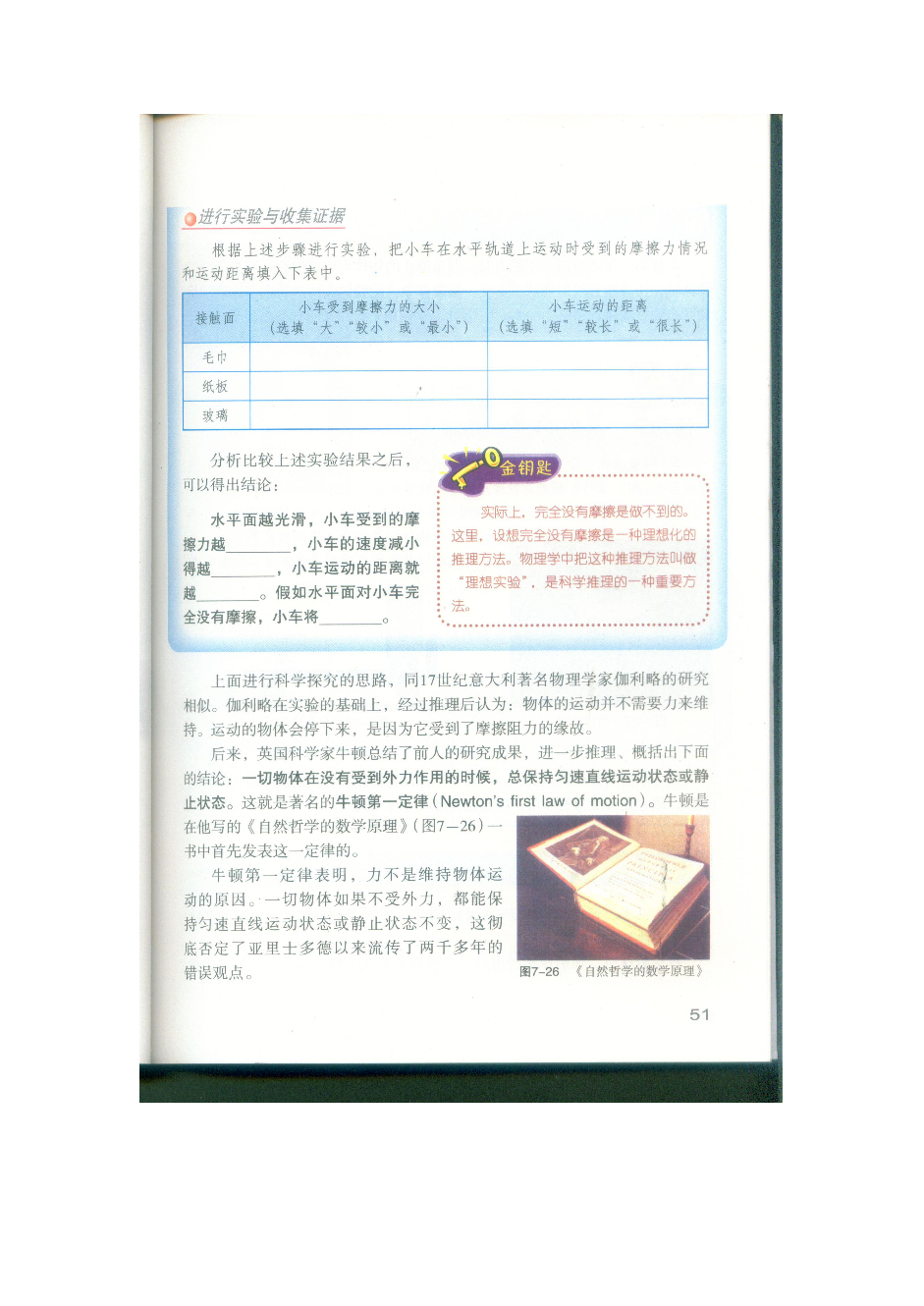 2013沪粤版物理八年级下册《7.3探究物体不受力时怎样运动》电子课本