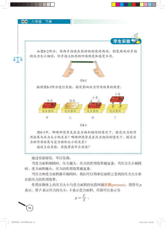 2012年新北师大版物理八年级下册《8.1压强》电子课本