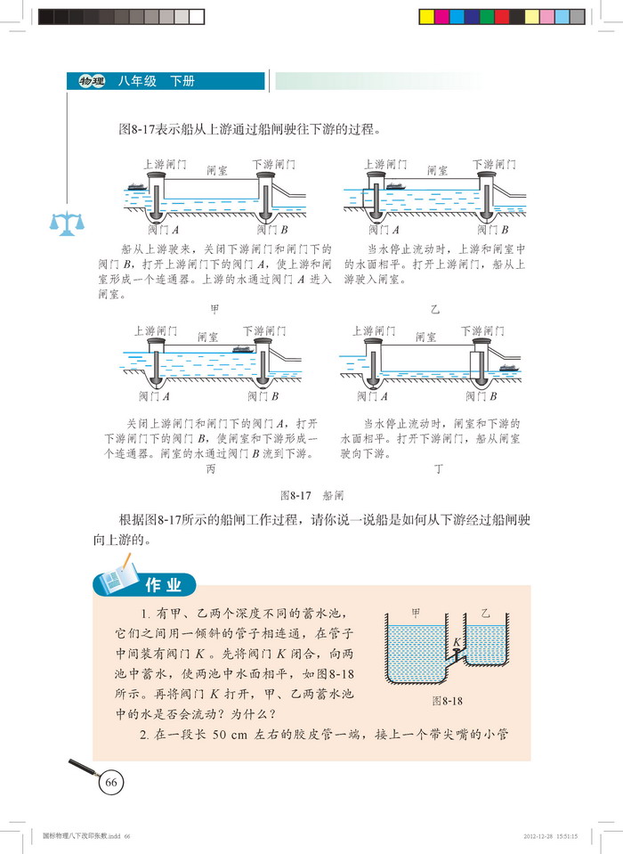 2012年新北师大版物理八年级下册《8.3连通器》电子课本