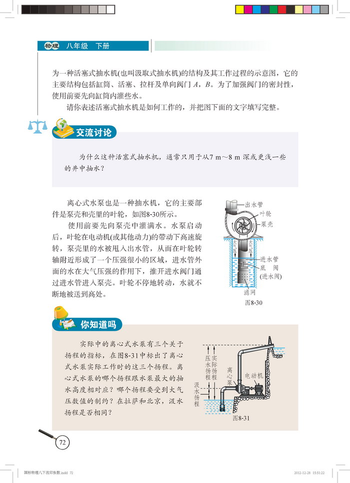 2012年新北师大版物理八年级下册《8.4大气压强》电子课本