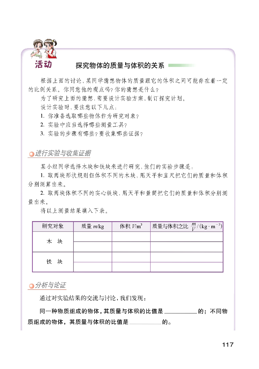 2013沪粤版物理八年级下册《5.2探究物质的密度》电子课本