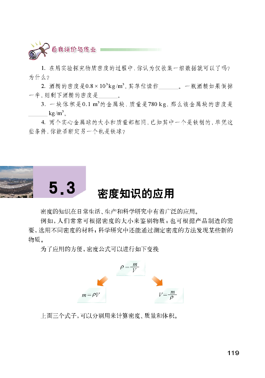 2013沪粤版物理八年级下册《5.3密度的应用》电子课本