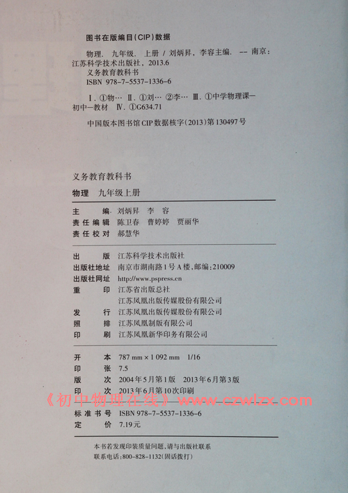 2013新苏科版物理九年级上册《封面和封底》电子课本